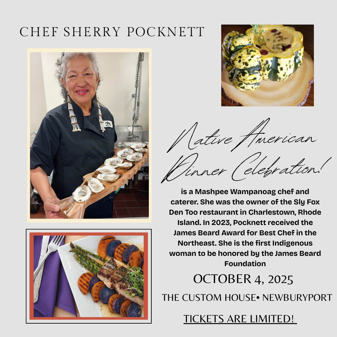 We are honored to welcome Chef Sherry Pocknett, winner of the James Beard Award for Best Chef in the Northeast, to the museum when she will create an intimate gastronomical experience with a unique indigenous flair and foods native to the Northeast. The meal will include a raw bar and cocktail hour with beer, wine, and a seasonal punch.