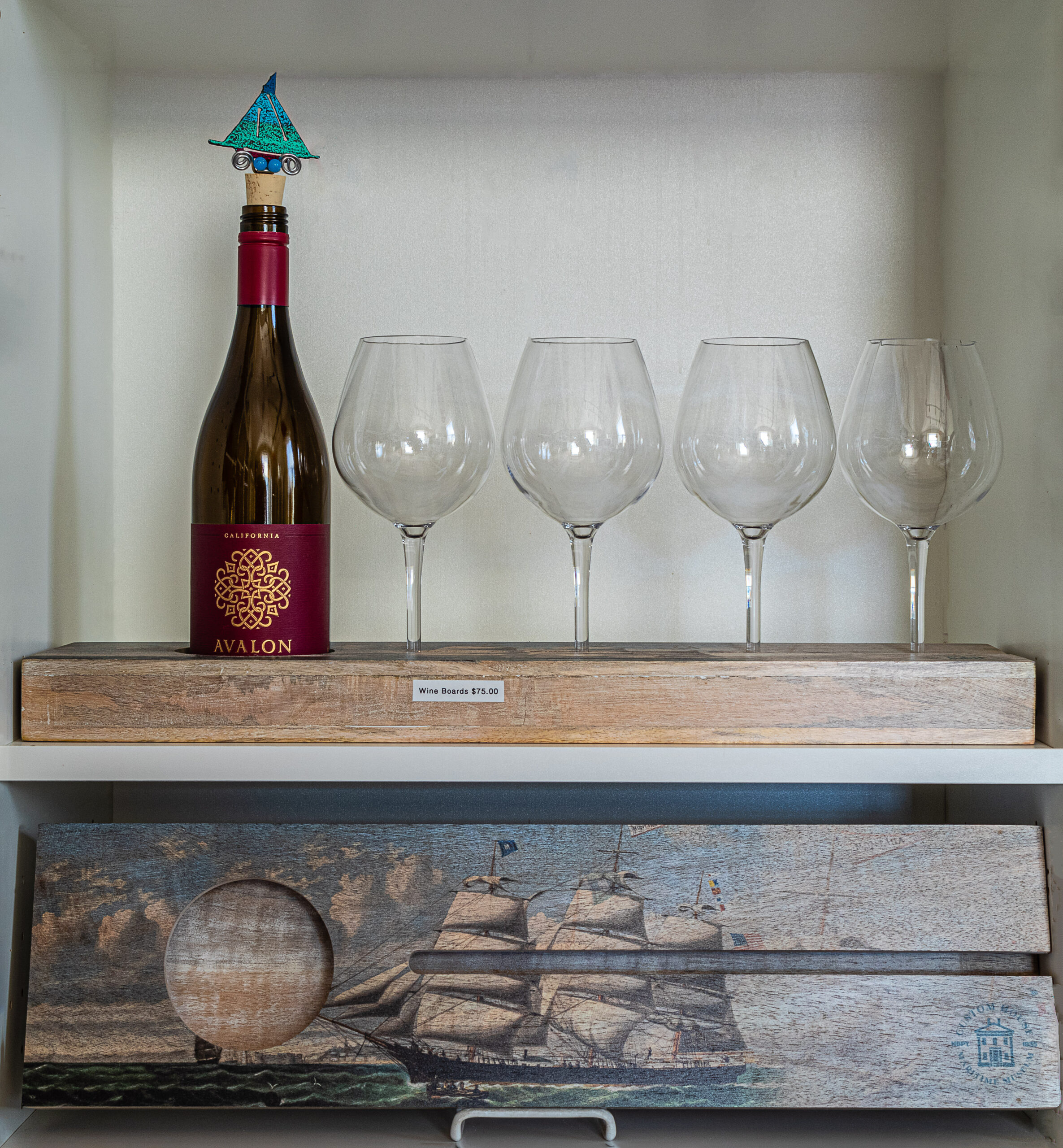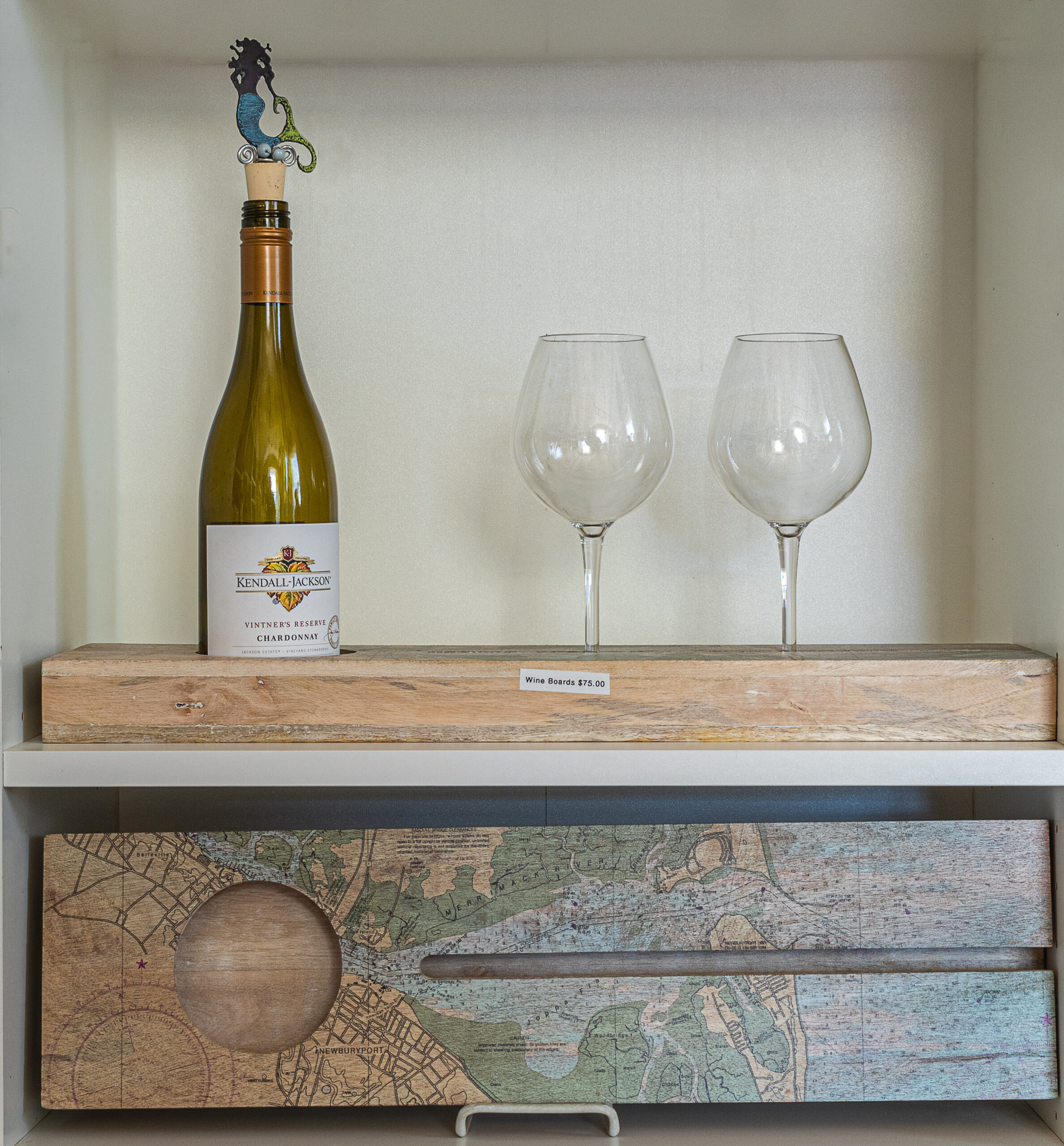 Wine Tray with a picture of the “Montana” and nautical map Newburyport Harbor on Merrimack River. (Wine bottle & glasses not included)